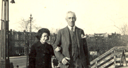 Clara Susanna van Santen met vader Jonas op de Berlagebrug, ongeveer 1933 Bron: privécollectie