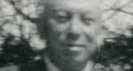 Leek : dorpsbewoners poseren voor de bakkerij van Palsma aan het Boveneind. Geheel links (half zichtbaar) Abraham From en daarnaast Abraham Levy van Dam (beiden met fiets). Daarnaast Philip van Dam. De oudere heer met knevel en pet is de vader van Philip